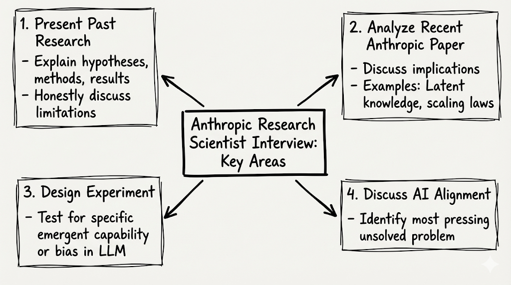 Research scientist interviews test your depth of knowledge, research experience, and ability to think creatively and critically about AI safety.