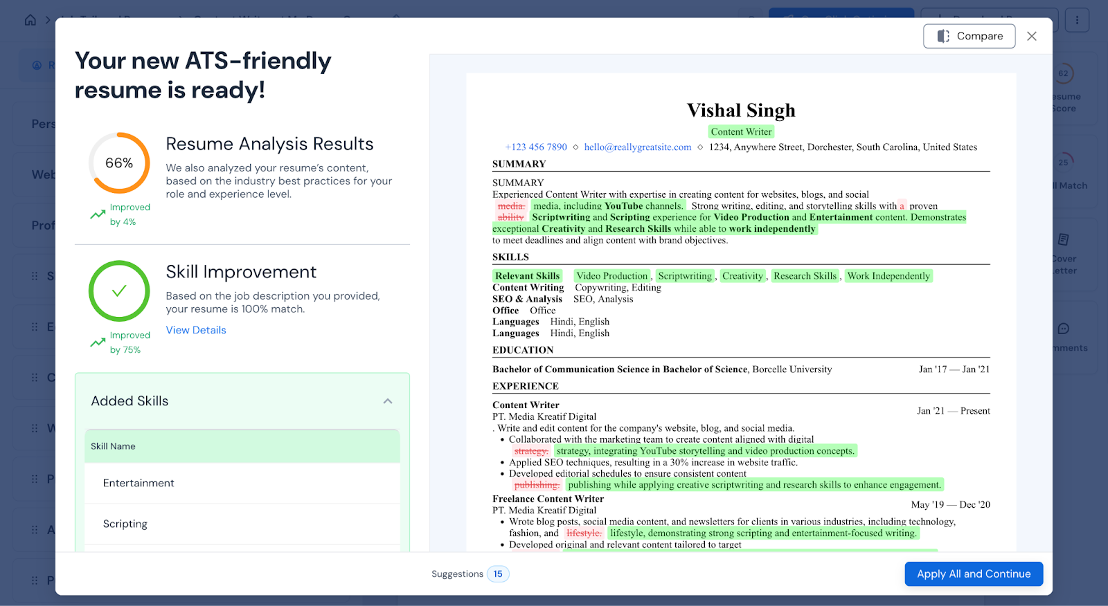 • Free plan is limited; only lets you tailor one resume