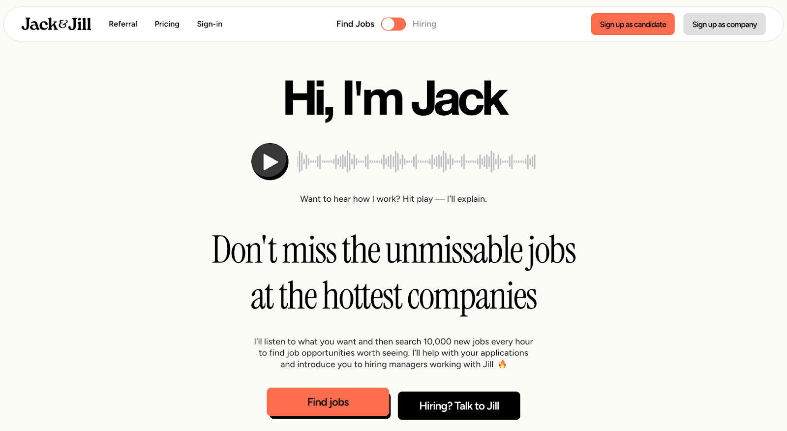 Job hunting can feel overwhelming. Jack & Jill is an AI-powered job search platform with a chatbot that learns what kind of role you want and then suggests job opportunities that match your preferences.