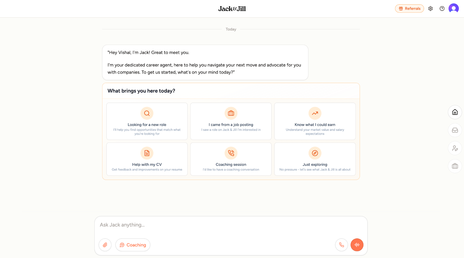 Jack & Jill is an AI-powered job search platform built around a chatbot. It learns what kind of role you want through conversation and then surfaces job opportunities that match your preferences. Now, let’s go through the setup process.