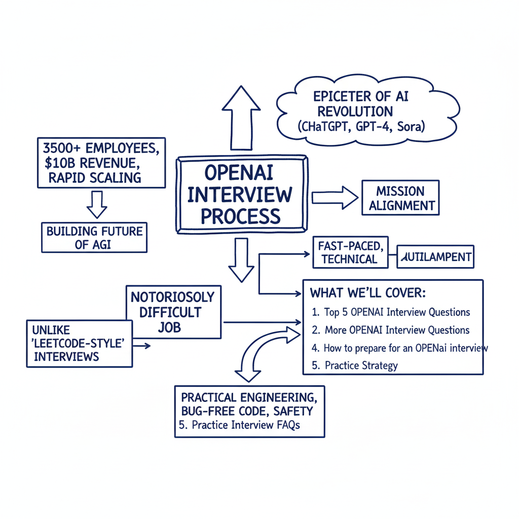 No matter what role you’re applying for at OpenAI, the interview process is intense. As the company behind ChatGPT, GPT-4, and Sora, OpenAI sits at the epicenter of the AI revolution. With over 3,500 employees and $10 billion in revenue, they are scaling rapidly—and they are looking for engineers who can build the future of AGI (Artificial General Intelligence).