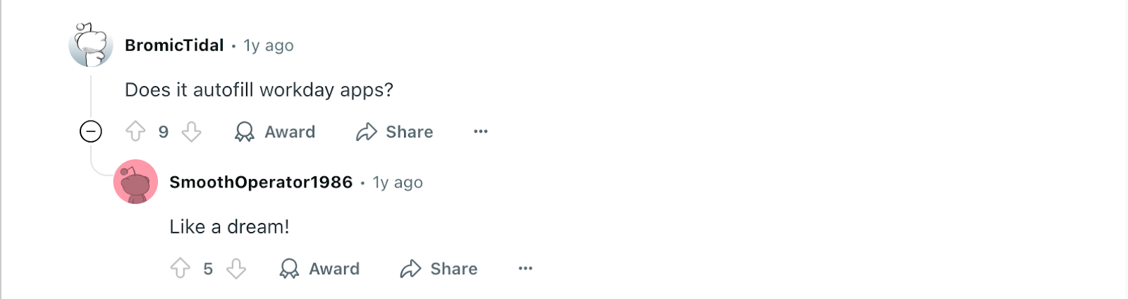 One user asked if Simplify works on Workday applications, and another replied that it works “like a dream.” Since Workday is a widely used ATS, this response highlights a key benefit for many applicants.
